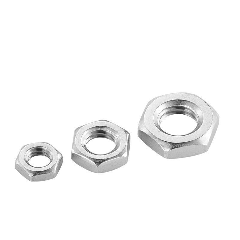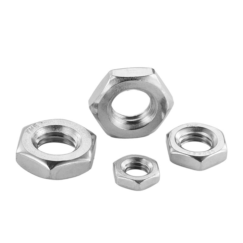 Hexagon Nuts plats supplémentaires avec fil de pas finest une sorte de noix mince et basse. "Extra Flat" signifie qu'ils sont plus minces que les noix ordinaires, et le fil de pas fin (avec plus de fils par pouce) peut fournir un ajustement précis et de meilleures performances de relâchement anti-vibration.