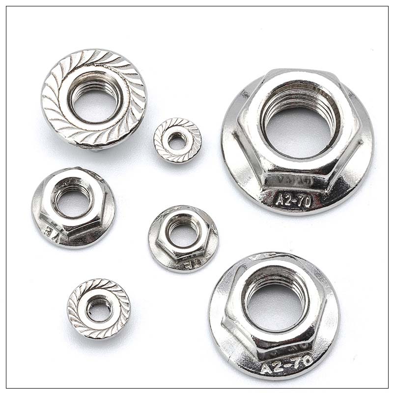 La mécanique et les travailleurs de la construction utilisent un écrou de bride hexadécimal métrique dans des environnements à haute vibration. La bride maintient étroitement la surface, réduisant le risque de desserrer l'écrou et le fil métrique s'adapte aux boulons standard, vous n'avez donc pas besoin de personnaliser des dimensions spéciales.