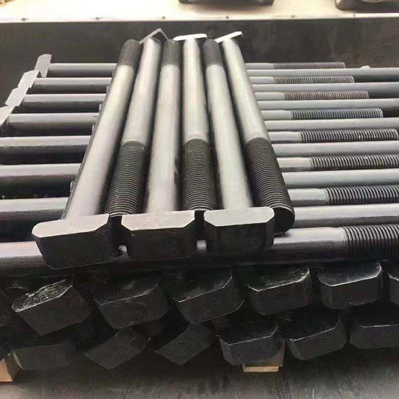 Le boulon d'ancrage en T est principalement utilisé pour fixer la piste aux traverses en béton de chemin de fer. La pièce plate en forme de "T" est fermement intégrée dans la rainure du dormeur pour empêcher le boulon de tourner. L'extrémité filetée dépasse vers le haut et est utilisée pour fixer le coussin de rail et la pince de fixation. Il peut fermement verrouiller tous les composants pour empêcher le train de vibrer et la charge de se déplacer.