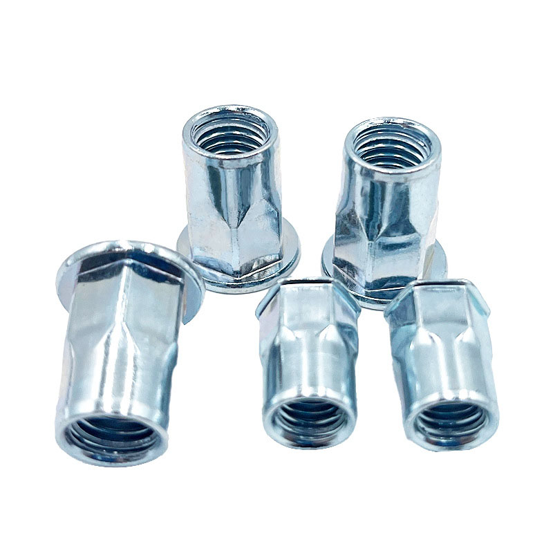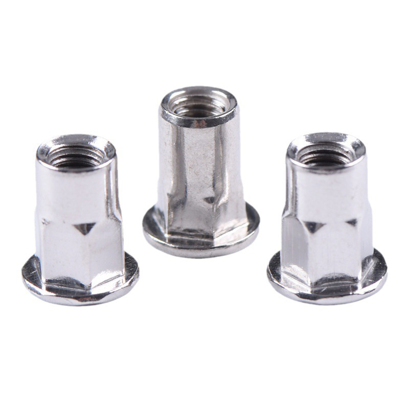 L'écrou à rivets hexagonal polyvalent a un corps hexagonal. Contrairement aux ronds, cette forme l’empêche de tourner une fois installé. C’est un élément clé de sa conception : il est conçu pour s’insérer dans des trous hexagonaux assortis. De cette façon, lorsque vous serrez la vis, l’écrou ne tournera pas avec elle. Il existe différents types disponibles, comme les styles hexagonaux complets et semi-hexagonaux. Les têtes sont également disponibles en options telles que la tête plate et la petite tête fraisée. Vous pouvez choisir celui qui correspond à vos besoins, que vous souhaitiez qu'il affleure le matériau ou qu'il ait simplement une petite projection après l'installation.